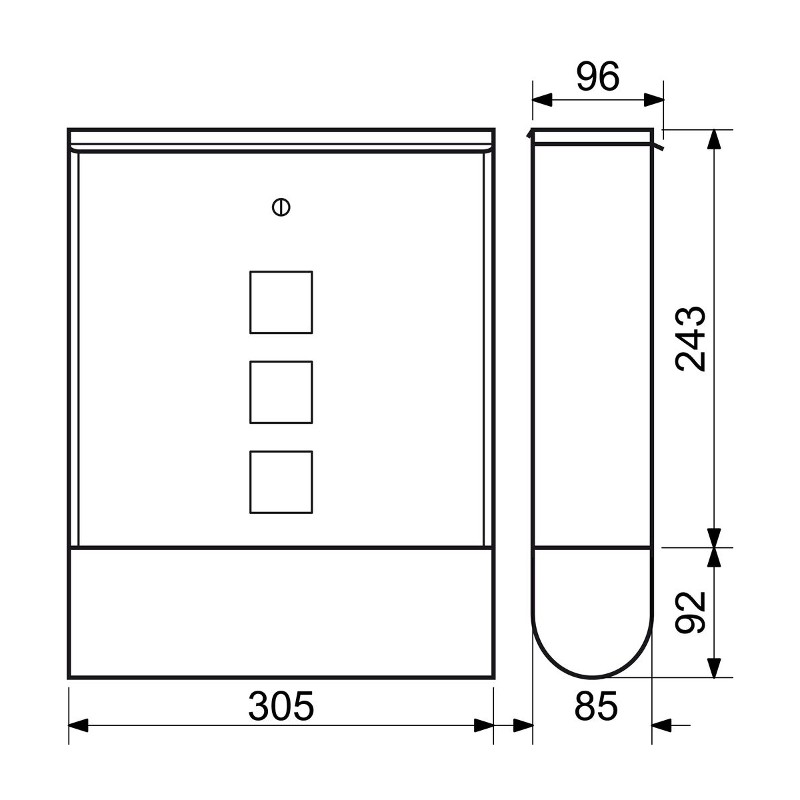 - Maße (B x H x T): 305 x 335 x 85 mm