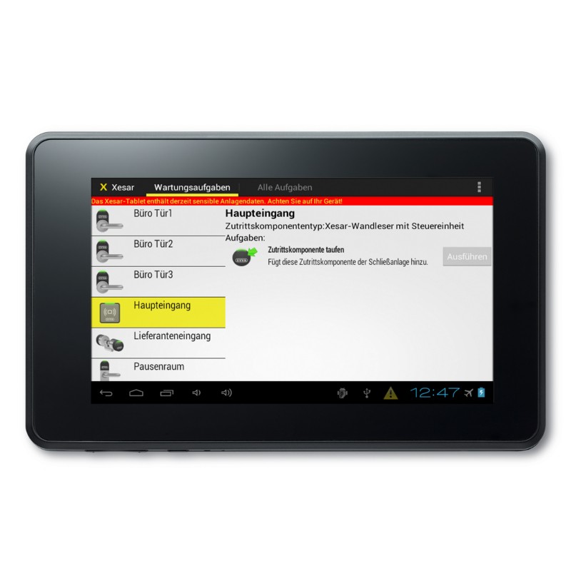 - Lieferumfang: Xesar-Tablet, vorinstallierte App, Verbindungskabel, Netzteil