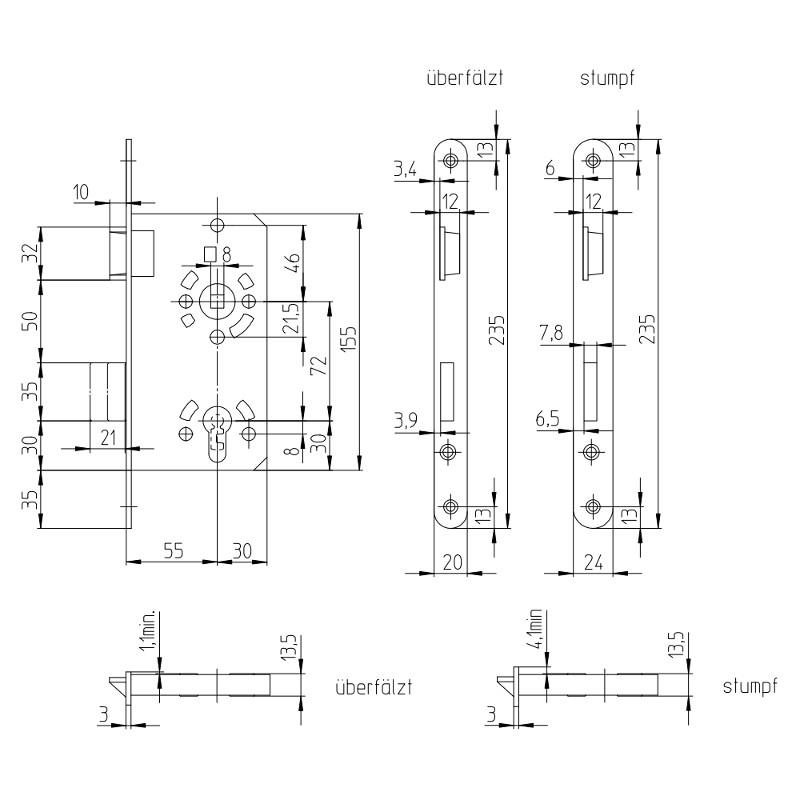 EAN 4032589011333 Produktgewicht (kg) 0,48 kg Dornmass 55 mm Stulpart abgerundet Stulpbreite 20 mm Stulpfarbe Stahl-nickel-silber DIN DIN links Nuss/Vierkant 8 mm Vierkant-Material Kunststoff Entfernung 72 mm Lochung Profilzylinder Kastenbreite 83 mm Kastenlänge 154 mm Kastentiefe 12 mm Material Riegel Stahl Material Falle Stahl -
