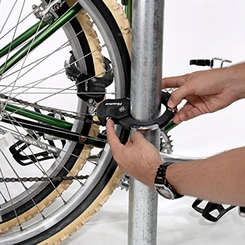 - die 7,6-cm-Hochsicherheitsschellen ermöglichen ein Verschließen an Parkuhren, Zaunpfählen oder anderen Fahrrädern