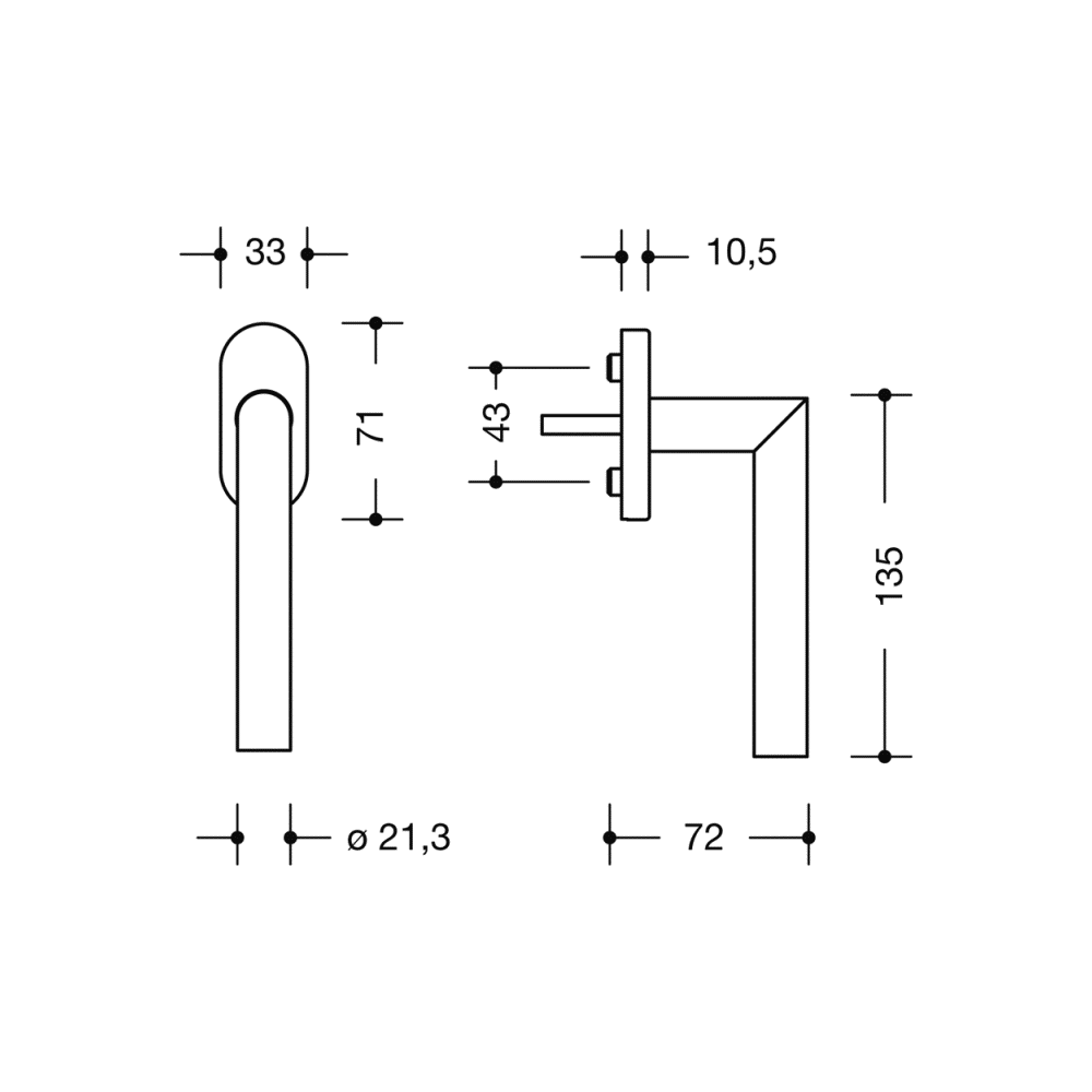 - Schraublochabstand 43 mm, mit 7 mm Vierkant