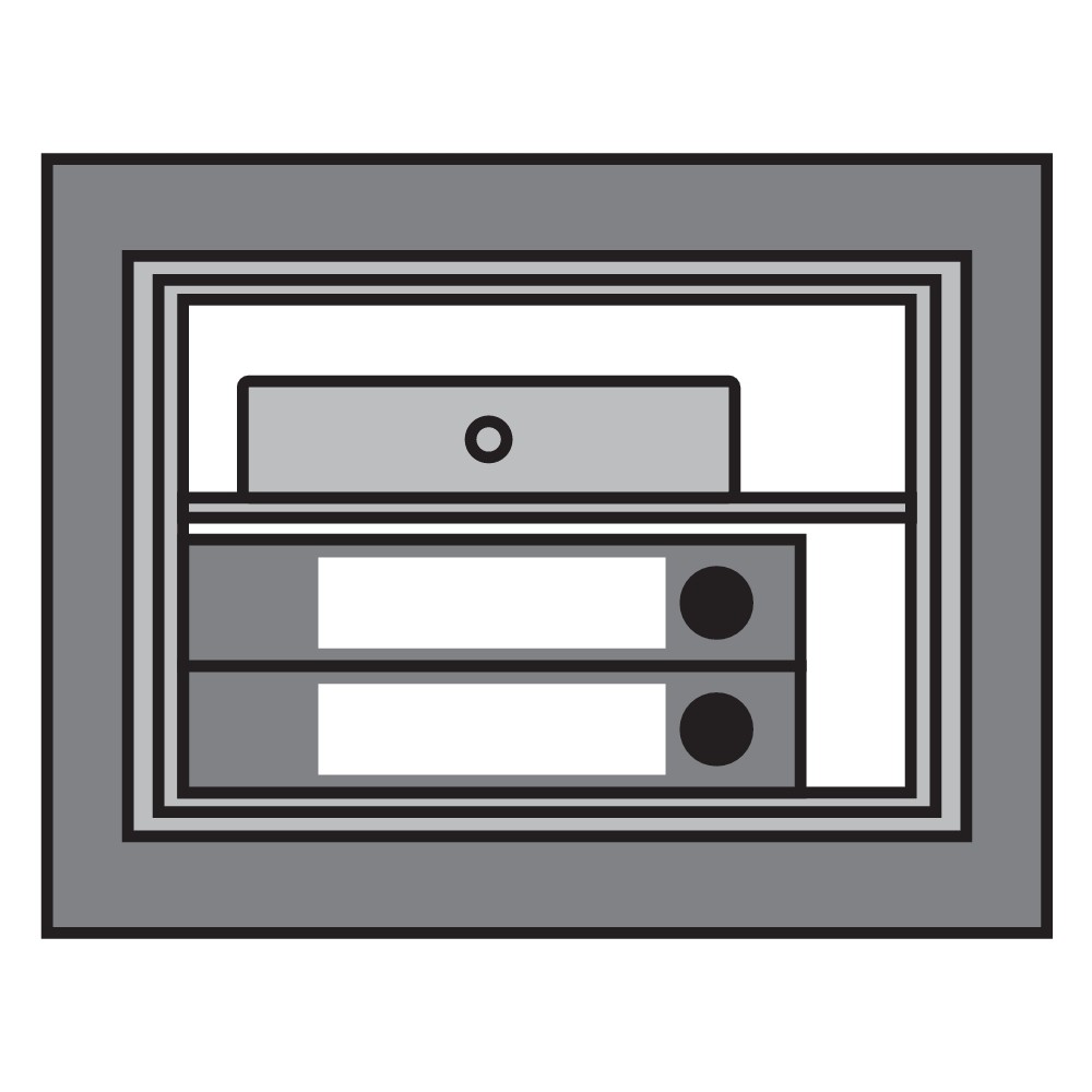 - Feuerschutzmaterial in Korpus und Tür nach DIN 4102-A1, Korpus mit umlaufendem Feuerfalz