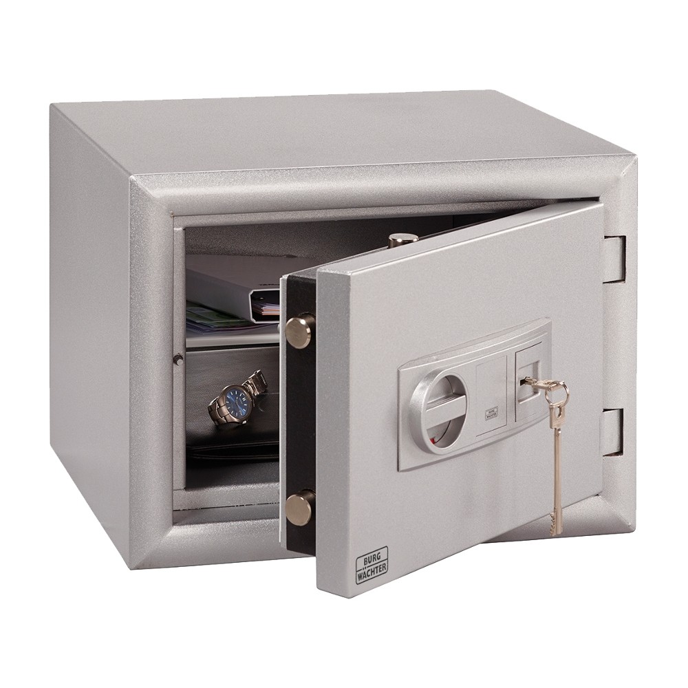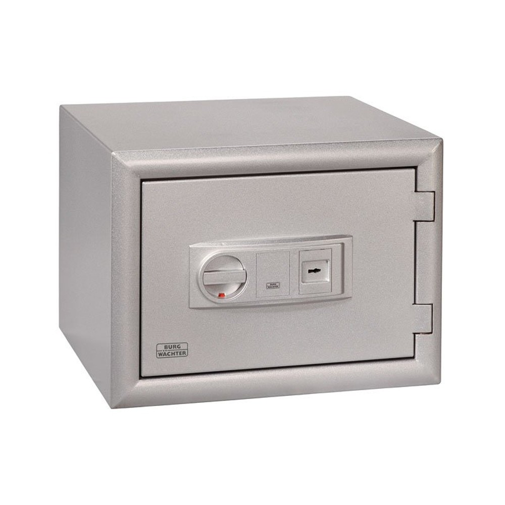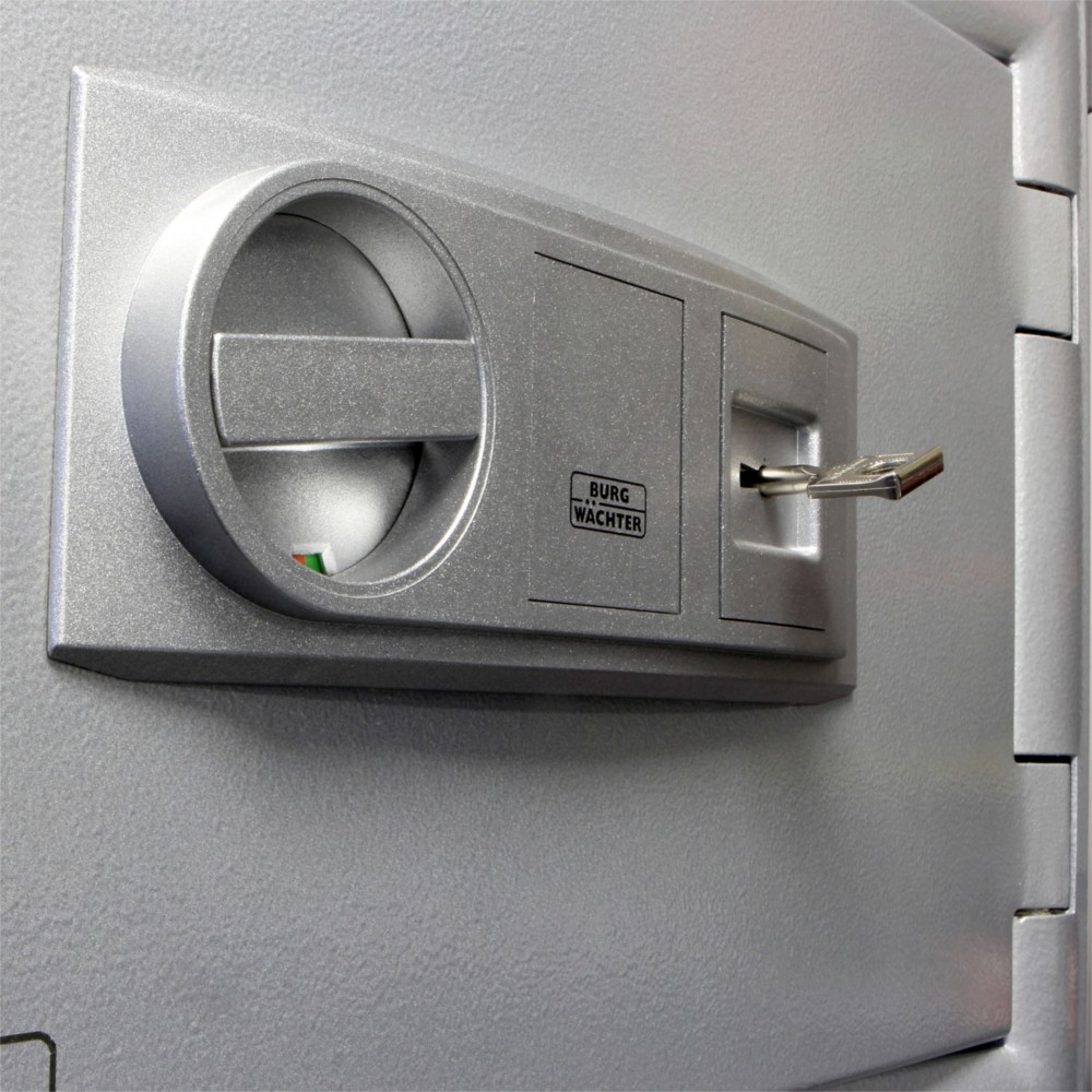 EAN 4003482375006 Produktgewicht (kg) 92,00 kg Farbe silber RAL Farbe silber lackiert Höhe 380 mm Breite 500 mm Tiefe 462 mm Einbruchsicherheit Widerstandsgrad I nach EN 1143-1 Feuerschutz 60 min für Papier Türschloss mit Hochsicherheits-Doppelbartschloss Eigenschaften Fachböden, Option Verankerung, Ordnertiefe -