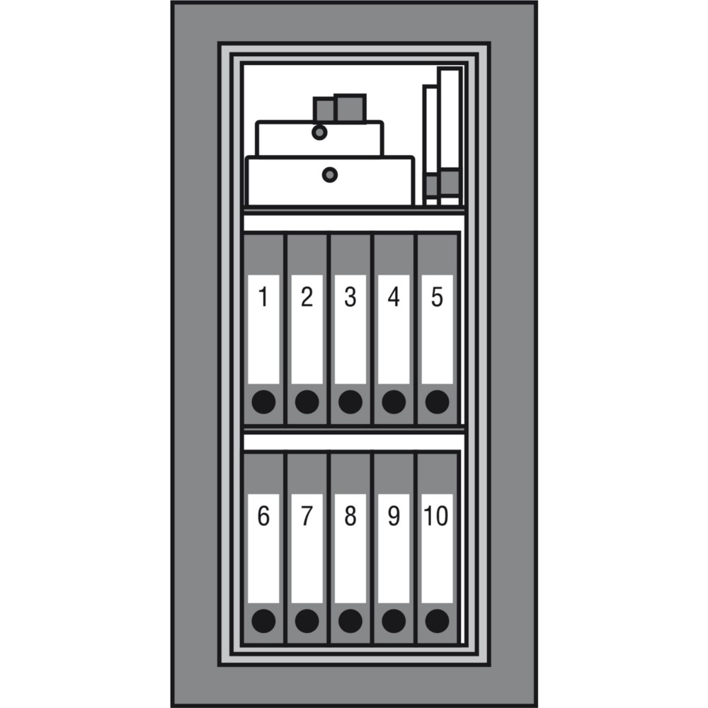 EAN 4003482375600 Produktgewicht (kg) 186,00 kg Farbe silber RAL Farbe silber lackiert Höhe 985 mm Breite 500 mm Tiefe 462 mm Einbruchsicherheit Widerstandsgrad I nach EN 1143-1 Feuerschutz 60 min für Papier Türschloss mit Hochsicherheits-Doppelbartschloss Eigenschaften Fachböden, Option Verankerung, Ordnertiefe -