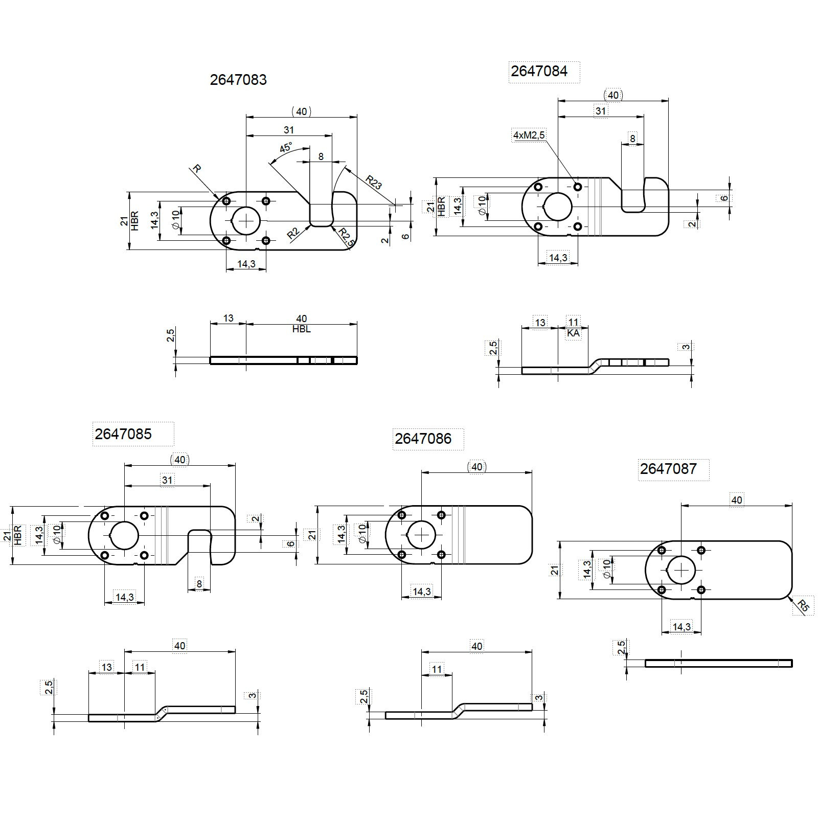 - Zwei Schließhebel - Endstellungen (abweichende Stellungen auf Anfrage)