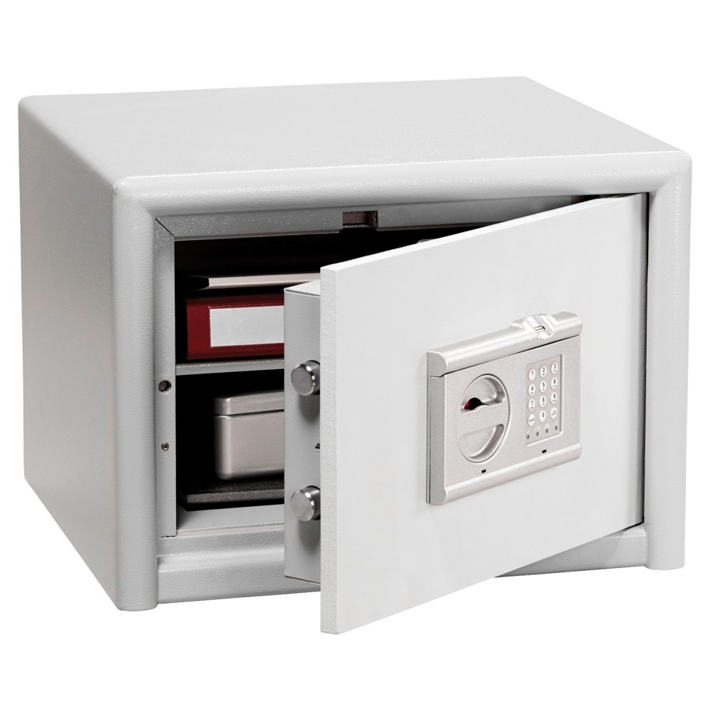 EAN 4003482334706 Produktgewicht (kg) 55,00 kg Farbe grau RAL Farbe Lichtgrau (RAL 7035) Höhe 360 mm Breite 495 mm Tiefe 445 mm Einbruchsicherheit Widerstandsgrad S2 nach EN 14450 Feuerschutz 30 min für Papier Türschloss mit PIN-Code & Fingerprint Eigenschaften Fachböden, Option Verankerung, Ordnertiefe -