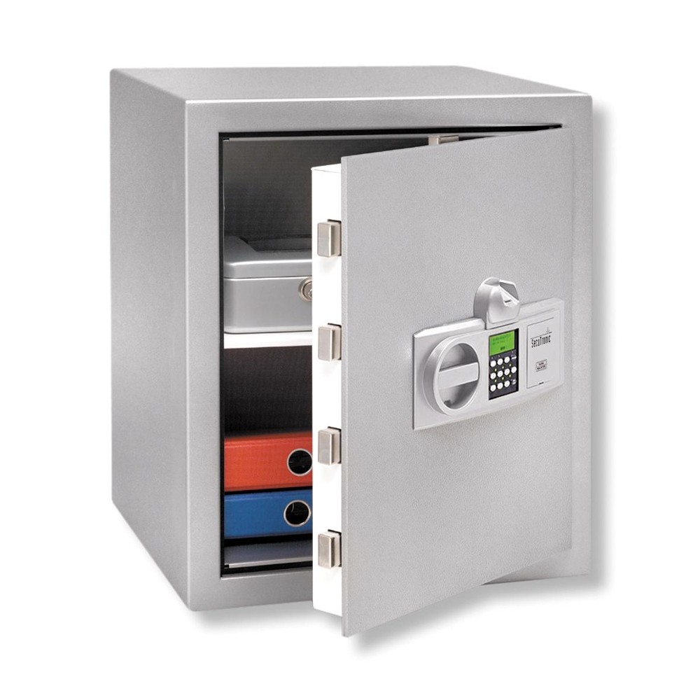 EAN 4003482322901 Produktgewicht (kg) 60,00 kg Farbe silber RAL Farbe Platingrau (RAL 7036) Höhe 530 mm Breite 430 mm Tiefe 390 mm Einbruchsicherheit Widerstandsgrad 0 (N) nach EN 1143-1 Türschloss mit PIN-Code & Fingerprint Eigenschaften Fachböden, Montagezubehör, Ordnertiefe, Panzerschrank -
