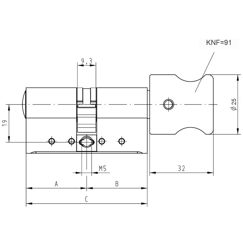 - Balliger Zylinderkernkopf mit verstärkter Schlüsselführung