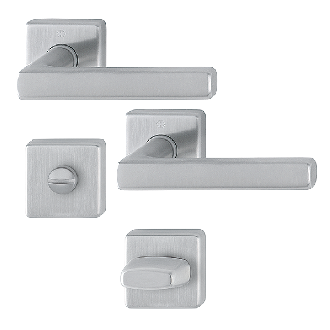 EAN 4012789610710 System Dallas Material Edelstahl Ausführung Klinke-Klinke Einbauort Bad/WC Oberfläche F69 Edelstahl matt Typ Rosette DIN beidseitig Nuss/Vierkant 8 mm Lochung WC Türstärke 37 - 47 mm -