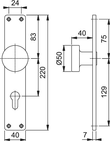 Einbauort Wohnungstür Typ Langschild DIN beidseitig Entfernung 72 mm Lochung Profilzylinder -