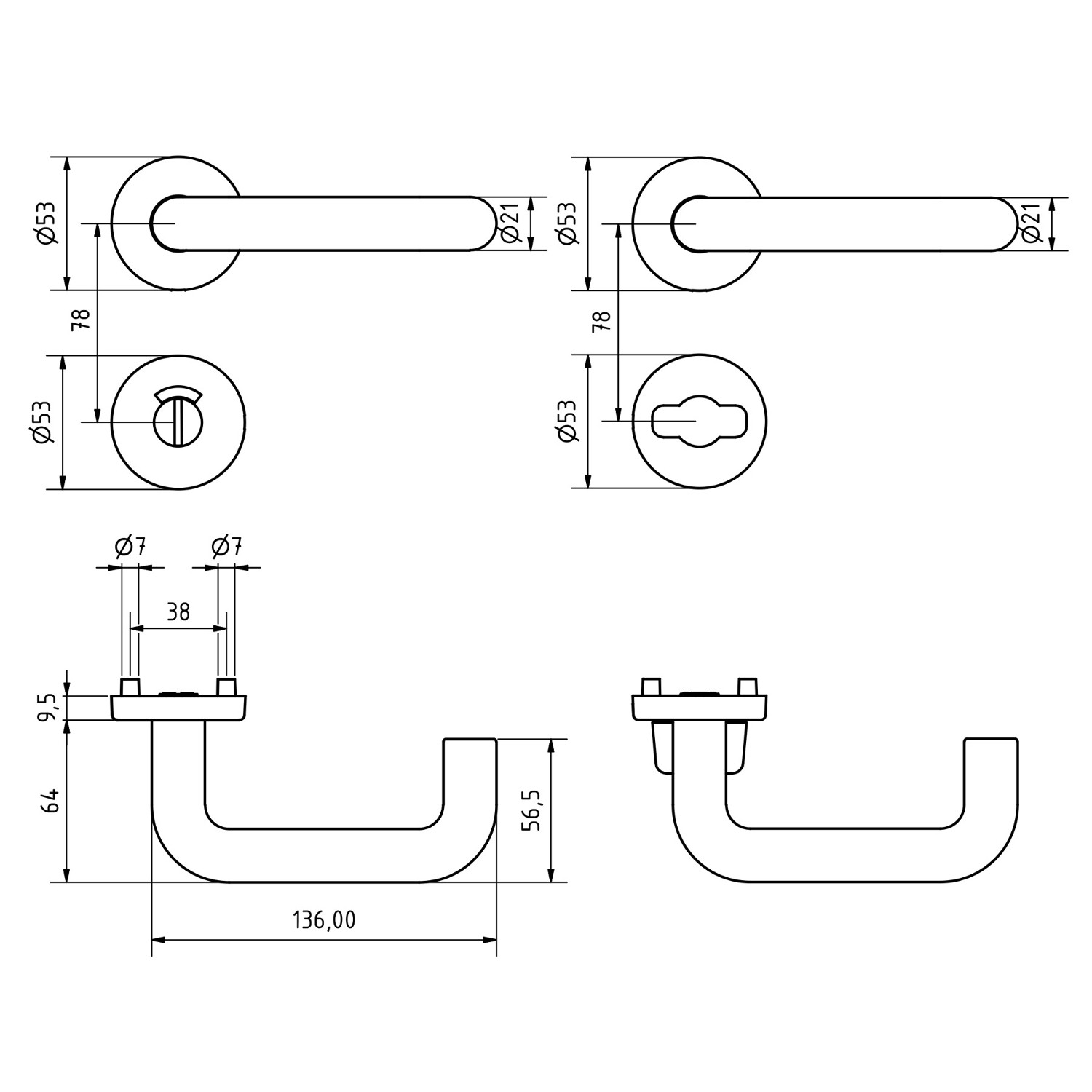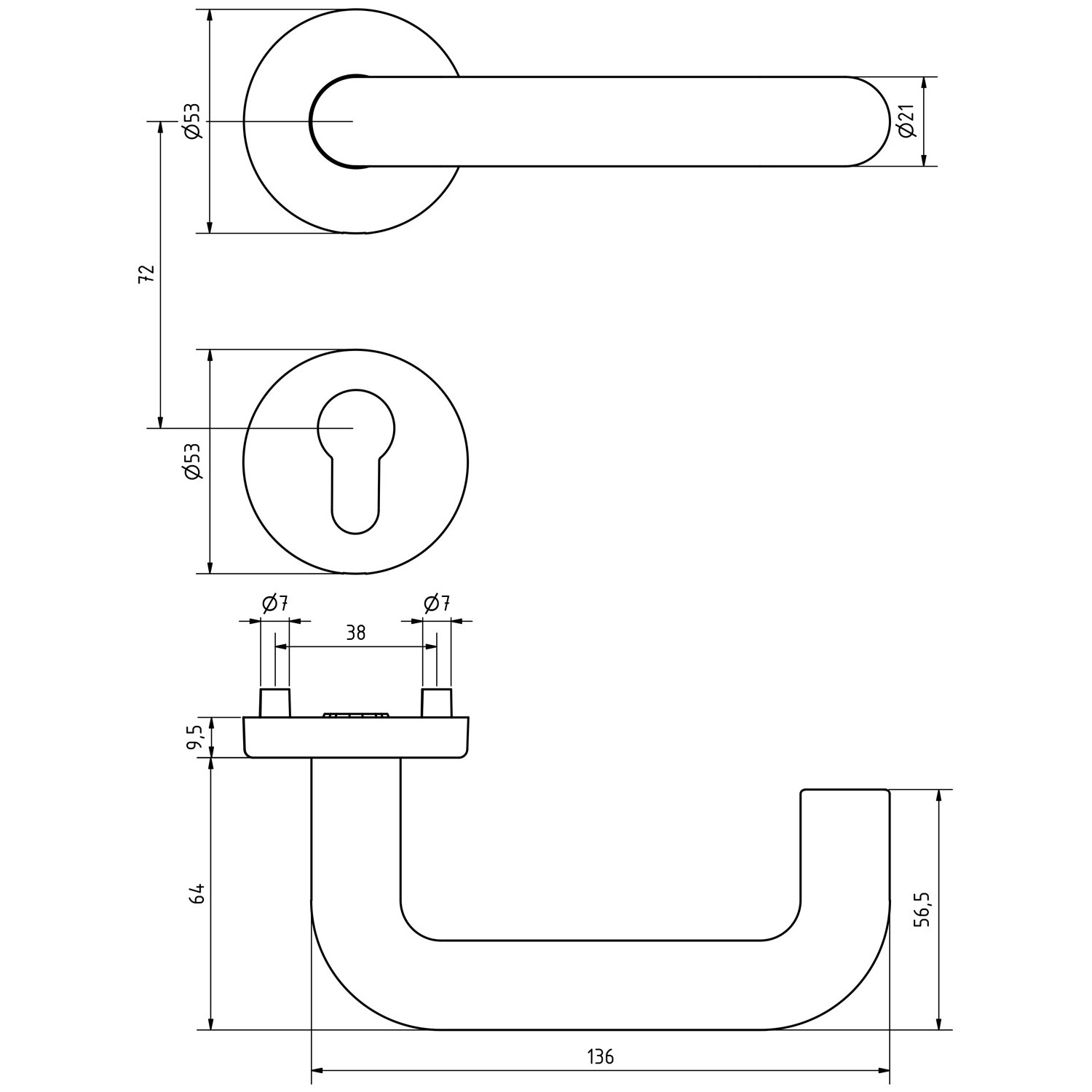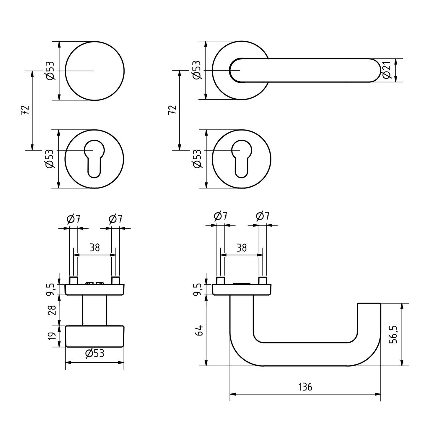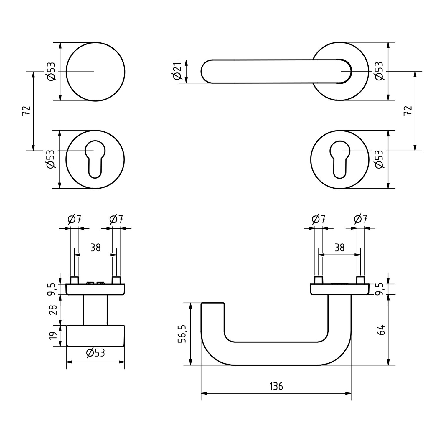Typ Rosette Nuss/Vierkant 8 mm Türstärke 37 - 42 mm -