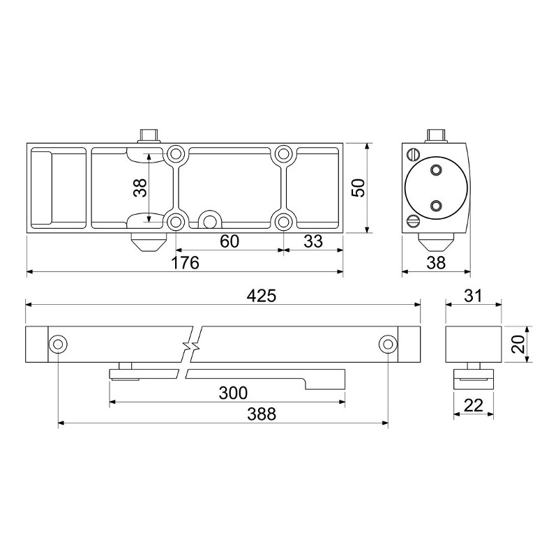 - Schließgeschwindigkeit und Endschlag einstellbar